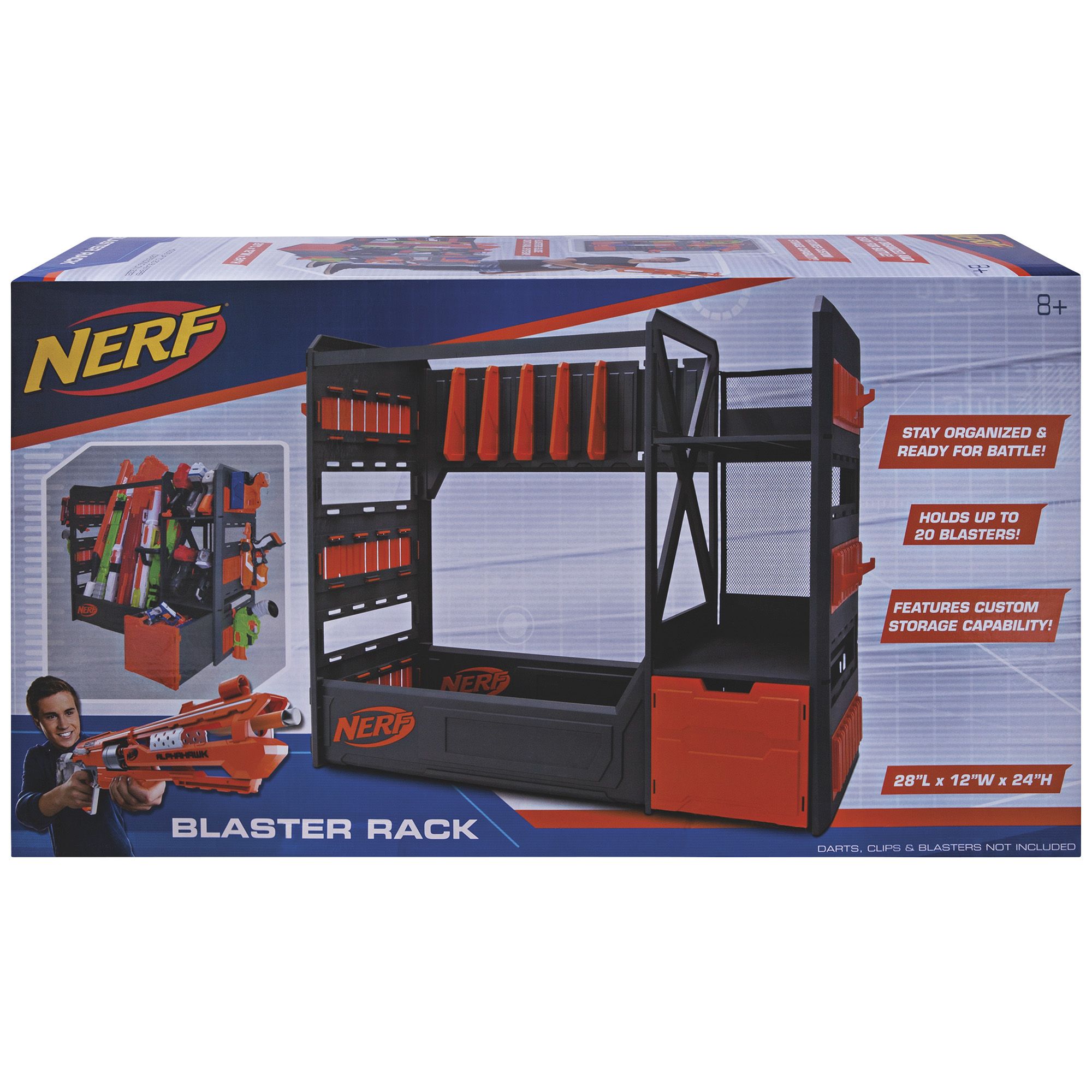 More images for nerf gun rack » Nerf elite blaster rack elite battlers can stay prepared with the nerf elite blaster rack! This 24" high x 12" deep x 28" wide blaster rack comes with everything you need for an easy assembly! Putting it together is straight forward. Upgrade your nerf battles to the elite level with this rack to organize your gear, making each battle all the more realistic. Nerf gun rack the rack has storage for most types of nerf guns, from pistols to rifles. This stylish black and orange nerf storage rack has space for up to 20 blasters, plus shelving, and a drawer for tons of darts and accessories! When your blasters are organized in the nerf elite blaster rack, you'll always be ready to gear up for action! Aug 01, 2018 · this rack is a great addition to the dan bilzerian starter kit for your young nerf enthusiast. This storage rack can hold up to 20 blasters of different sizes with shelves, drawers, rail mounts and hooks. Ebay.com has been visited by 1m+ users in the past month When your blasters are organised in the nerf elite blaster rack, you'll always be ready to gear up for action! Ensure easy access to all your firepower with storage for up to 20 blasters, plus shelving and a drawer for lots of ammo and accessories!